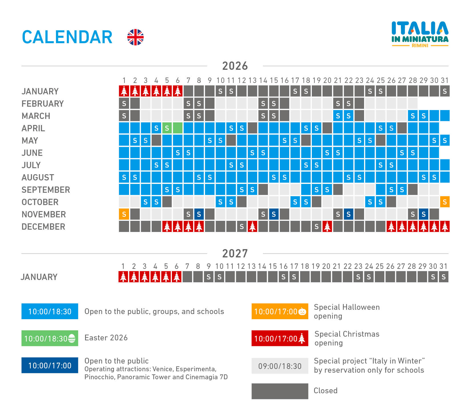 - With the park open from 10am to 6.30pm (Blue Days and Easter), the ticket offices close