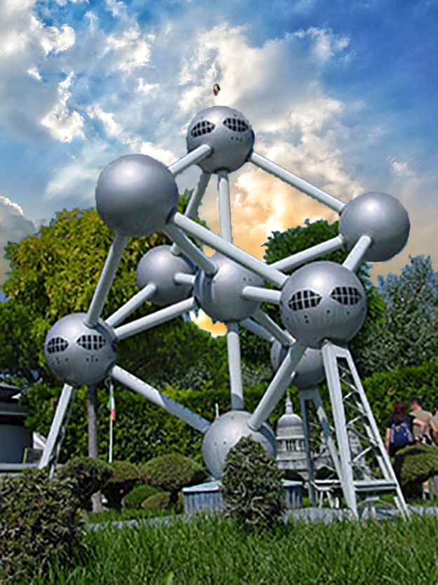 Il gigantesco monumento, costruito per l'Esposizione Universale del 1958, rappresenta un atomo ingrandito 165 miliardi di volte.
