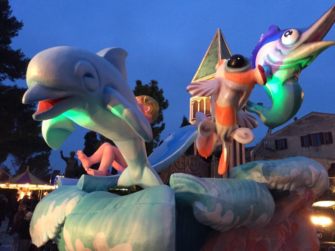 Grande ultima festa oggi al Carnevale di Fano fra delfini, pesci colorati, scivoli e miniature in cartapesta con i parchi della Romagna! Il gruppo Costa Edutainment, che dal 2014 gestisce i parchi di divertimento più importanti della costa romagnola, ha sfilato il 12 e il 19 febbraio con un carro allegorico tutto suo, nella prima domenica del Carnevale di Fano.