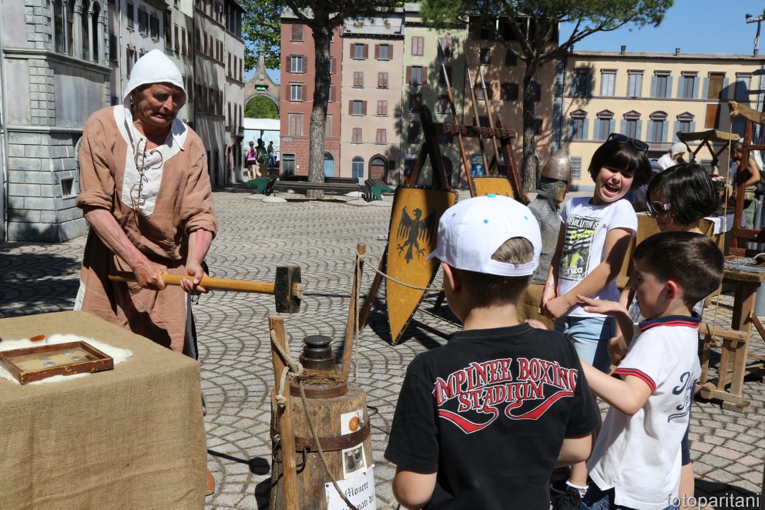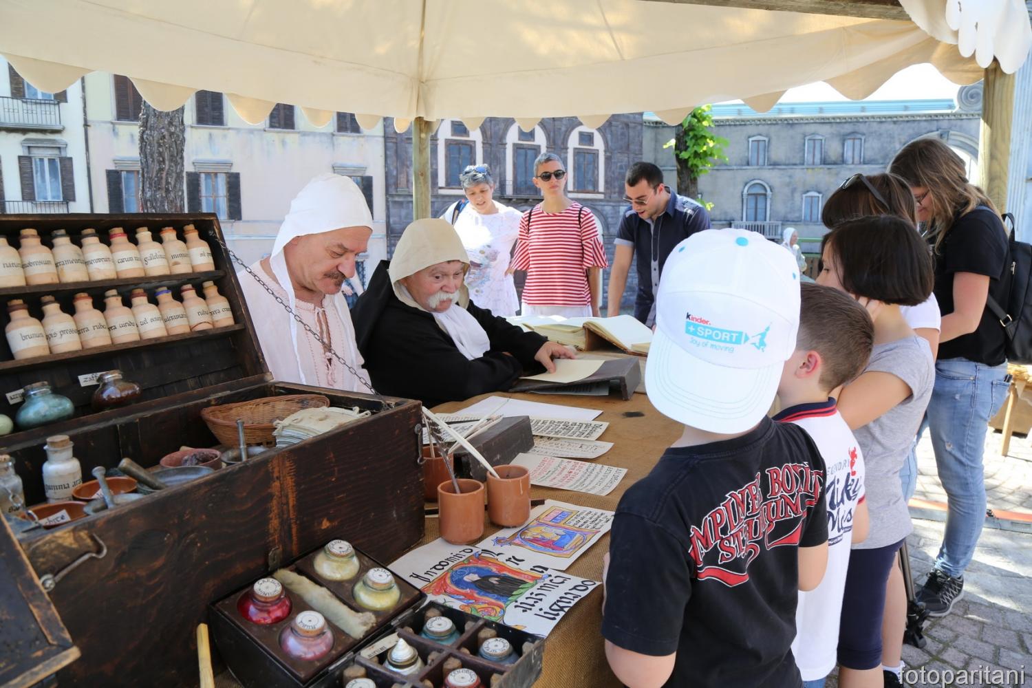Nella splendida cornice di Piazza Italia trasformata in un mercato medievale, potrai vedere da vicino come veniva coniata una moneta ai tempi del medioevo, le tecniche per realizzare un anello, imparare a costruire una penna d’oca per scrivere su una pergamena e come realizzare una spazzola per pulire gli animali.